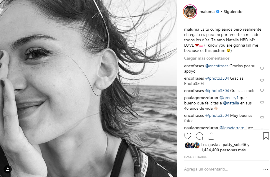 «Es tu cumpleaños, pero realmente el regalo es para mi por tenerte a mi lado todos los días. Te amo, Natalia (sé que me vas a matar por esta foto), escribió el colombiano.