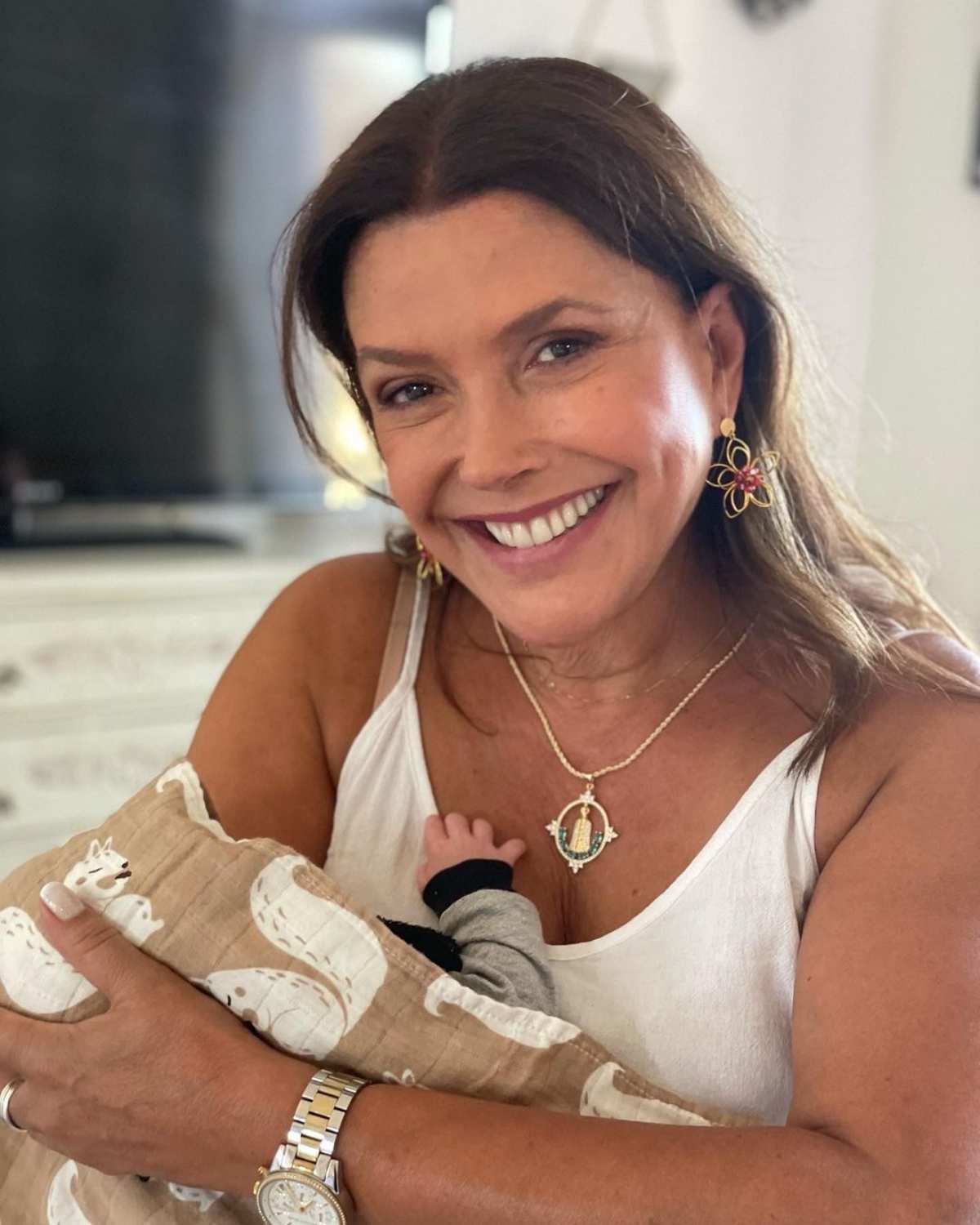 Poco después, Carolina Arregui compartió las mismas imágenes, donde aparece muy contenta mientras sostiene a su nieto Galo en sus brazos.