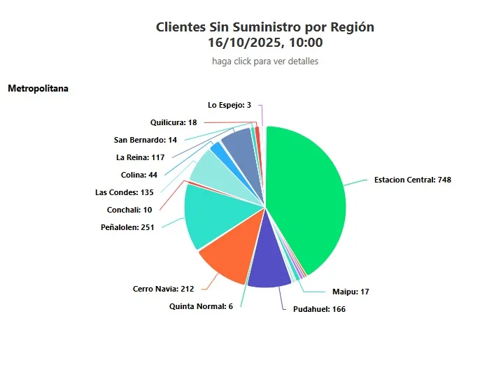 Además, la Superintendencia de Electricidad y Combustible (SEC) reveló que casi 2.000 clientes se encuentran sin suministro en la RM. Esto, también mediante su sitio web, el cual se actualiza durante todo el día.