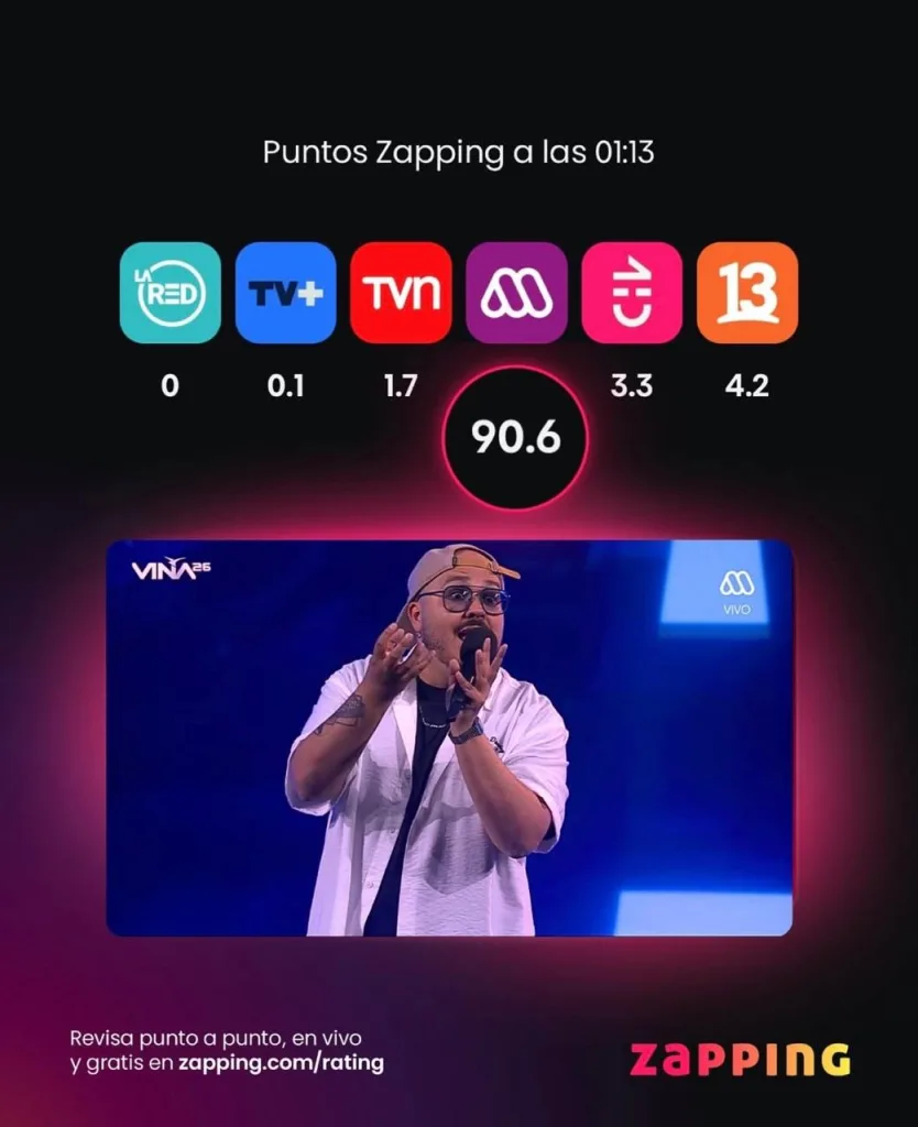 De acuerdo a los datos de Zapping durante ese tiempo, la señal de Vicuña Mackenna se posicionó con 90,6 puntos de rating.
